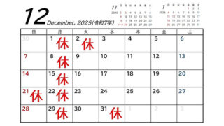 【11月の休みのお知らせ】
