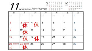 calendar 【11月の休みのお知らせ】